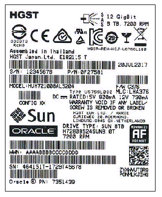 The Oracle Model Number on the serial number label is H7280B524SUN8.0T.