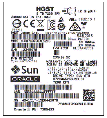 The Oracle Model Number on the serial number label is H7280A525SUN8.0T.