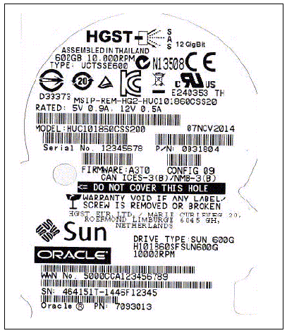The Oracle model number on the serial number label is H101860SFSUN600G.