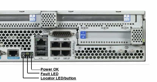 | Fault LED | Amber | If on, indicates that service is required. The ALOM showfaults command provides details about any faults that cause this indicator to be lit. |