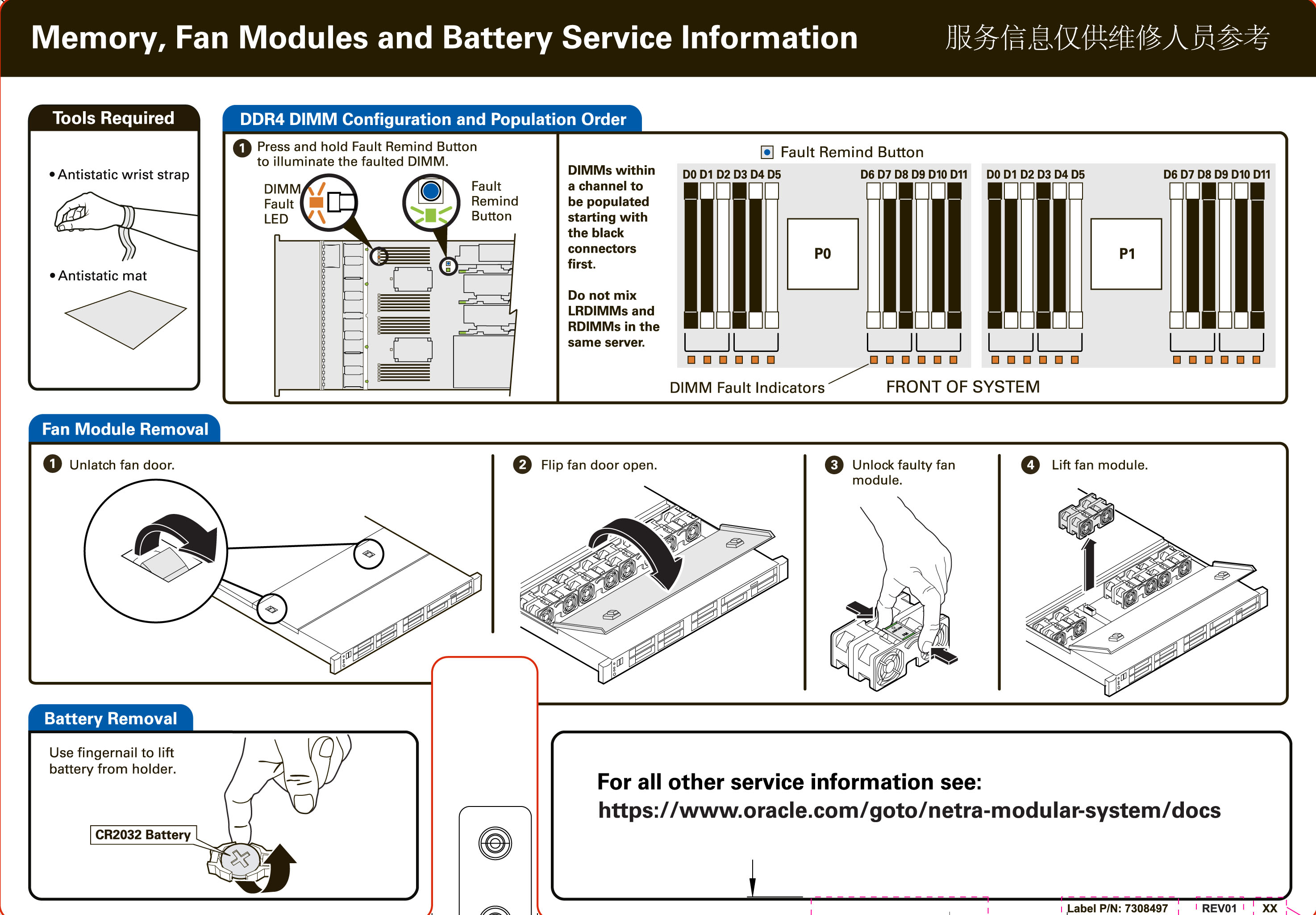 - X5-2M Compute Node: Memory, Fan Modules and Battery Service Information